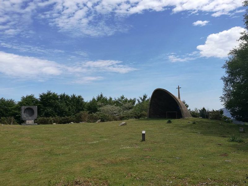 En este paraje se encontró una estación megalítica de un centenar de cromlechs, dólmenes, túmulos y un menhir, de ahí su importancia histórica y fue el escultor Oteiza quien diseña la estela, con una pequeña capilla obra de Luis Vallet y una sencilla piedra negra.