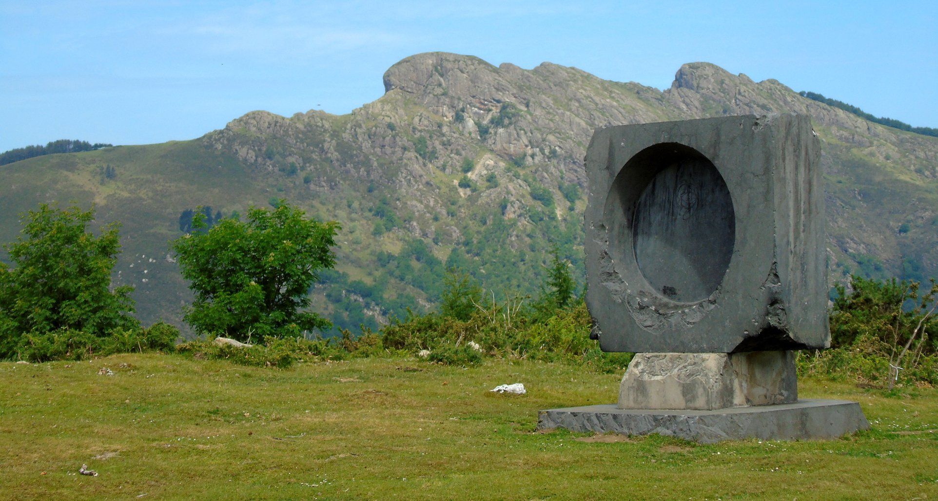 En este paraje se encontró una estación megalítica de un centenar de cromlechs, dólmenes, túmulos y un menhir, de ahí su importancia histórica y fue el escultor Oteiza quien diseña la estela, con una pequeña capilla obra de Luis Vallet y una sencilla piedra negra.