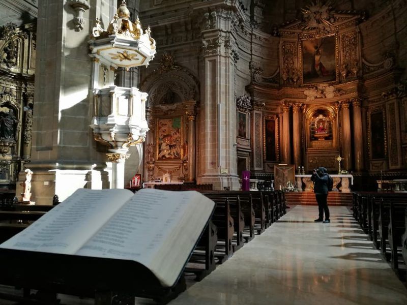 Con Raquel como anfitriona y más adelante con el párroco Edorta Kortadi, historiador de arte, Donosti City tuvo acceso a esta magnífica Iglesia y a sus partes más secretas. Tras su bello pórtico rococó tantas veces fotografiado, sorprende el espacioso Altar Mayor, con calle central dedicada a la Virgen del Coro y a San Sebastián, obra de Diego de Villanueva.