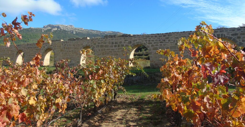 La mejor opción es coger la carretera del área recreativa de San Ginés, y de ahí al acueducto de San Andrés de Muga que merece una buena sesión de fotos. Fue felizmente recuperado en 2016 y abastecía de agua al monasterio franciscano del mismo nombre. Su origen está en la llamada fuente del Toloño. En el pueblo conocen a esta zona como «Los arcos», formando parte hoy día del Paisaje del Vino y del Viñedo de la Rioja Alavesa.