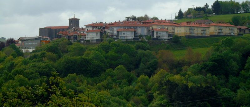 De nuevo en la carretera terminamos de subir cinco kilómetros más hasta este pueblo que el fuego destruyó en 1597, de ahí que muchas casas sean del siglo XVIII. Destaca la Iglesia de San Esteban del gótico vasco, un nuevo humilladero, la curiosa cubierta del frontón donde se juegan los fines de semana importantes partidos de pelota así como el arrastradero donde hay concursos de deporte rural.