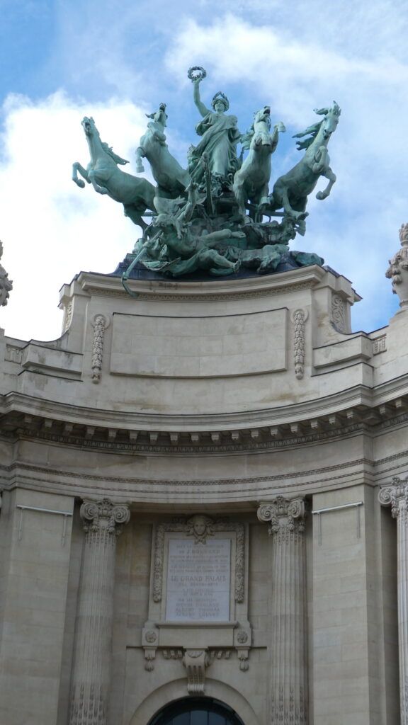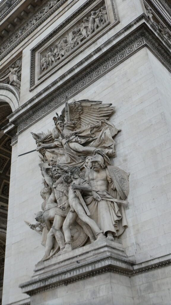 Caminando llegamos al Arco del Triunfo- L´arc du Trionphe, situado en un lugar estratégico. Es considerado uno de los monumentos más famosos de la capital francesa y probablemente se trate del “Arco de Triunfo”- l’ étoile-  más célebre del mundo. Allí en su base se encuentra la tumba del soldado desconocido con la llama eterna del recuerdo y es imprescindible ascender a su terraza, una oportuna atalaya  si se quiere dominar la ciudad, con sus largas avenidas, les champs Elysées, por un lado, y el  destacado skyline de la “defense”, el moderno barrio de los negocios, por el otro.