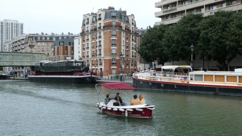 Entonces hay cruceros que recorren el canal  ampliando las ofertas de ocio. Atravesamos el parque y continuamos el canal por su ribera izquierda, vemos el barrio local con sus edificios clásicos, populares y humildes pero siempre muy franceses, y también el gran mercado semanal con productos agrícolas, que no deja indiferente a nadie.