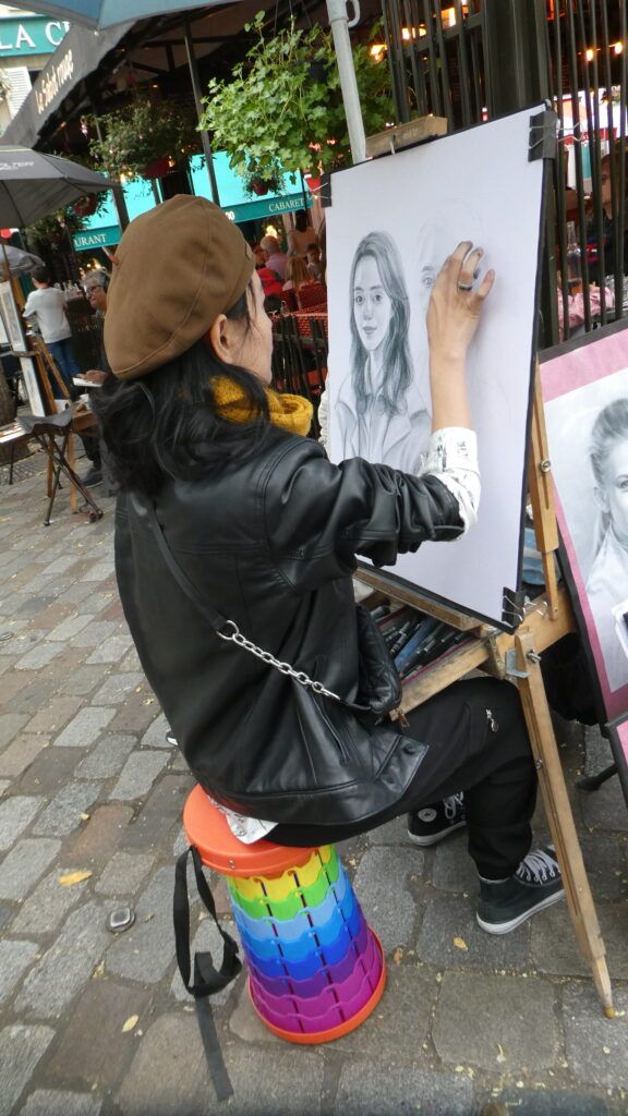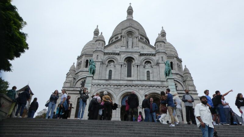Tras la visita el siguiente destino es uno considerado imprescindible en París, Montmartre ( uno de los barrios más encantadores y peculiares, e inspirador de larga lista de artistas ), y la basílica del Sacré Coeur, que nos queda lejos, pero el metro es un medio rápido y en pocos minutos nos sitúa en la base de la colina, que con el concurso de un funicular nos coloca en el monumento religioso, que ofrece además la posibilidad de ascender las 249 escaleras a la cúpula.