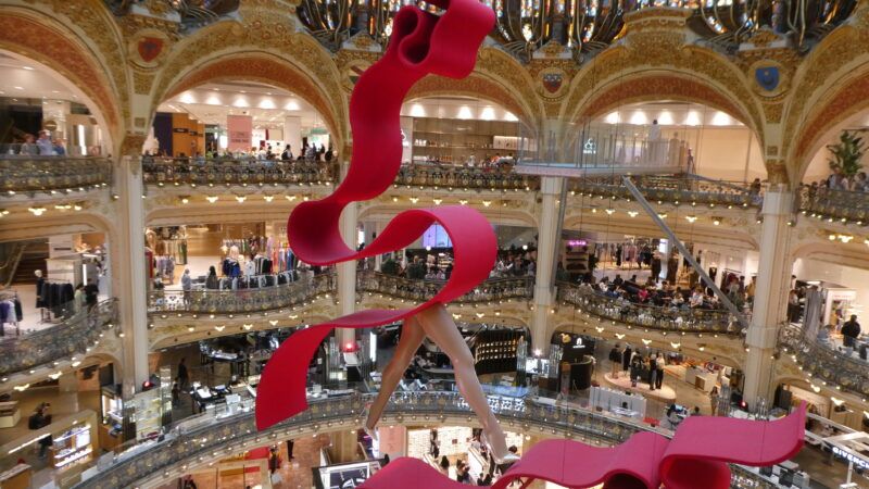 Cerca tenemos una mítica, grande e histórica galería comercial, “Lafayette”, que invita a ascender a la terraza del sexto piso para disfruta de una extendida vista de la ciudad, que es gris desde aquí con son sus edificios “mansardanos” en primer plano y donde se puede almorzar en self service antes de continuar las visitas.