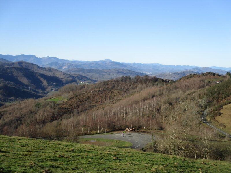 Y la fiesta del pedal continúa, ahora con una bajada de 8 Kms. hasta el Barrio de Gurutze de Oiartzun. Habrá pocos descensos de carretera de montaña tan bellos como éste. A pie de los montes olvidados del valle de Oiartzun la carretera es un espectáculo panorámico de montañas y valles , fantástico y mágico de primer orden.