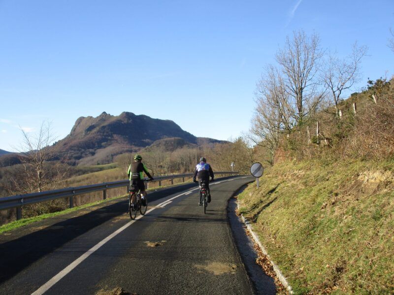 Pues sí, así es, es un reto salvar las fuertes pendientes con la bici que desde la baja altura de Irún ( 27 m), conducen al ciclista hasta la base de la Peña de Aia ( Elurretxeko lepoa 445 m).