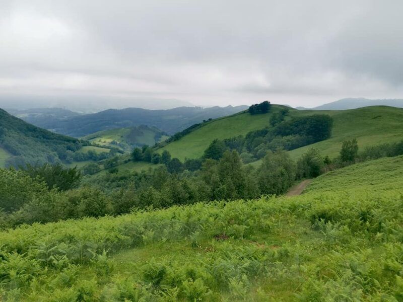 Un poco más adelante llegamos al cruce del caserío Zaldin, posiblemente el caserío con mejores vistas del País Vasco, ya con la niebla levantando lo que nos permitió ver un panorama que alcanza Donosti, Oarsoladea, Ulía, Jaizkibel…