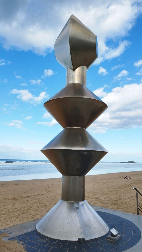 La más esbelta del paseo es una figura femenina que vigila Zarautz. Tres veces más alta que una persona de 1,70. Realizada en acero inoxidable con acabado satinado, formada por cilindros y conos truncados que se unen por sus bases. En palabras de su autor: “antropomorfa, femenina, totémica, que vigila, vela y protege sus dominios, su entorno».