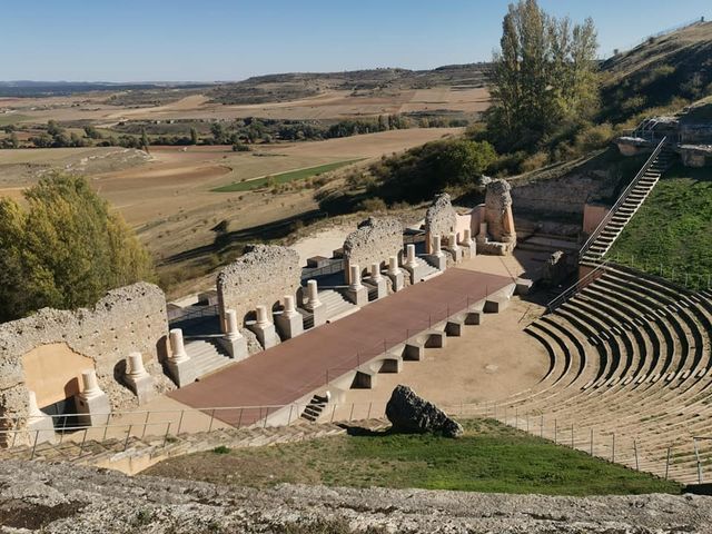 - Peñalba de Castro: CLUNIA: la antigua ciudad romana de Clunia, muy importante en la Hispania Citerior, fue una de las ciudades romanas más destacadas donde, dicen, vivían 10.000 personas. Vemos los edificios del Foro, las termas imperiales y, sobre todo, el Teatro tallado en la roca con capacidad para 9.000 espectadores.