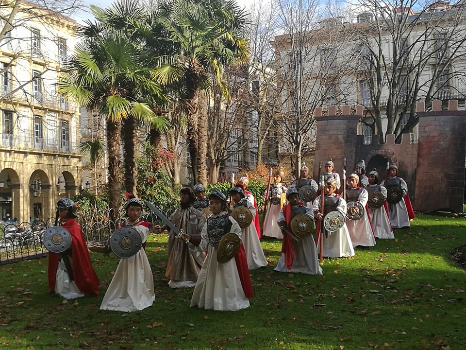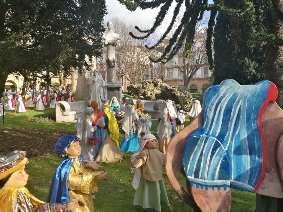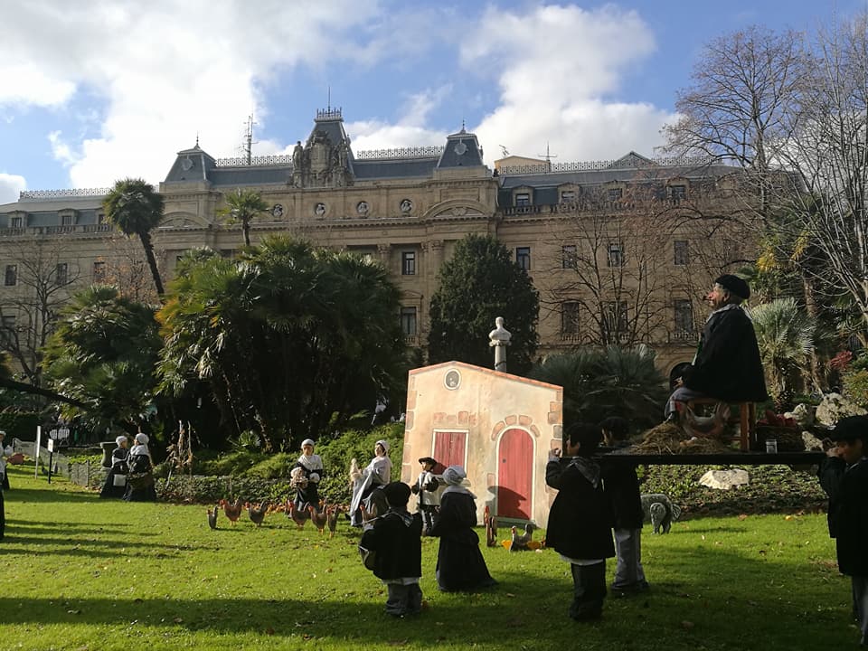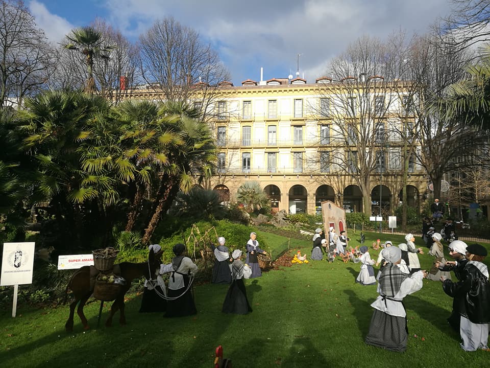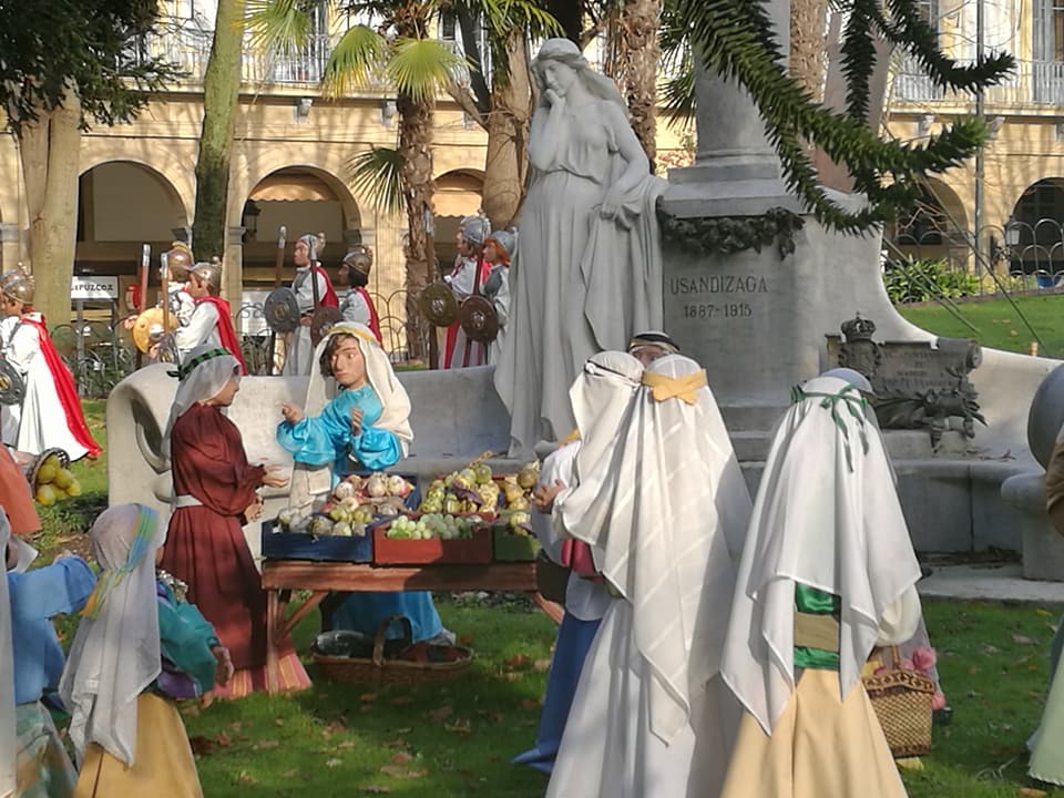 Olentzero, Reyes Magos, tropas romanas, la Anunciación, el portal de Belén, gallinitas… no falta un detalle en los jardines de la Plaza para deleite de los niños.
