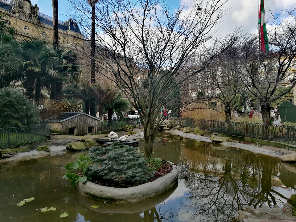 Además hay un pequeño lago con cisnes y patos a los que habremos dado migas de pan todos los donostiarras, conectado con otro más pequeño de nenúfares por un puentecito de madera y detrás, una diminuta colina que parece presidir la Plaza.