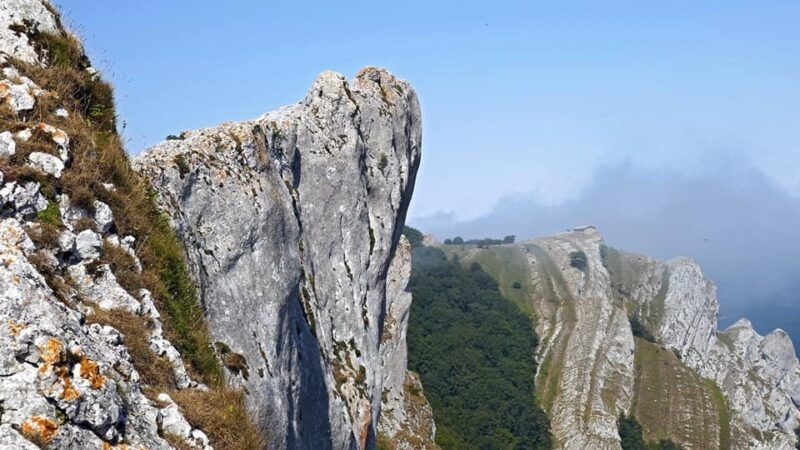 La excursión es apta para cualquier montañero y para niños, y puede complementarse siguiendo bien por toda la cresta de la sierra y con muchísimo cuidado para ver los espectaculares cortados de 400 metros de caída vertical, o bien por la pista inicial hasta un cruce de caminos. El de la derecha me lleva hasta la ermita de San Adrián, y el de la izquierda hasta la sima de Tximuakoleze (165 metros de profundidad), y a la bella calzada de Zunbeltz o Zalbide, según vemos en el siguiente enlace.