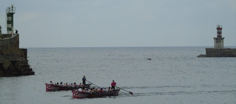 Muchas traineras y trainerillas daban un toque deportivo a la bocana para deleite de los amantes de estampas clásicas de nuestra tierra, las vimos de San Juan, de San Pedro, de Donosti, de Hibaika…
