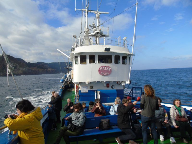 Tras recorrer las dependencias del barco y aprender sencillas fórmulas para cuidar el planeta, partimos a la mar y es que este atunero, entre otras actividades, realiza interesantes talleres y salidas para conocer desde el mar la belleza de los acantilados de Ulia y Jaizkibel. Primero la mirada hacia el Museo Albaola, luego hacia las empinadas escaleras del Faro de Senekozuloa… las que tantas veces subió Leire Altuna en el Faro del Silencio o la Jaula de Sal, obras imperdibles de Ibón Martín.