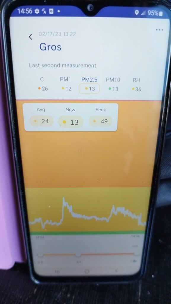 La respuesta está en los monitores de calidad del aire de bajo coste, entre los que se encuentra el medidor portátil AirBeam3 que viene utilizando Kalapie y el voluntariado de las AACC del proyecto nacional CWCA.