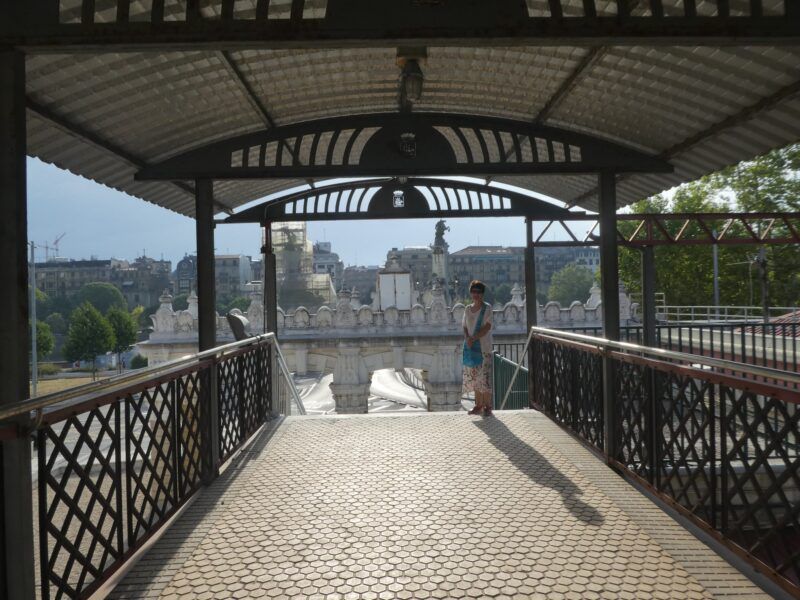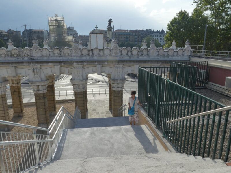 Por unas afortunadas escaleras en dos brazos se accedía a la pasarela superior, para llegar cómodamente al barrio de Egia.
