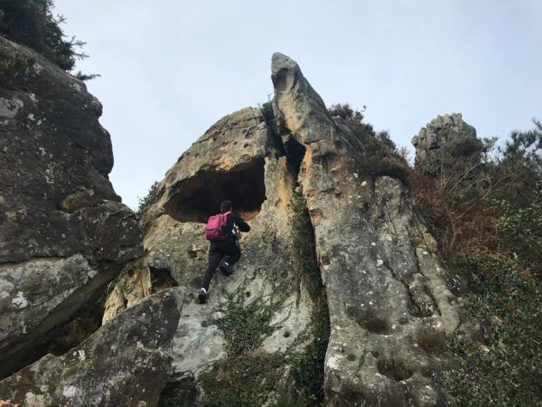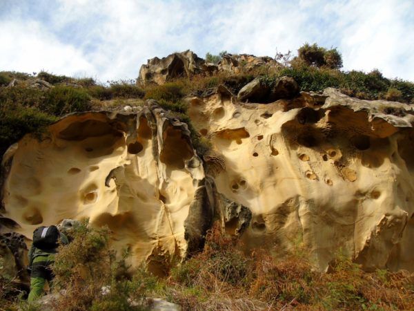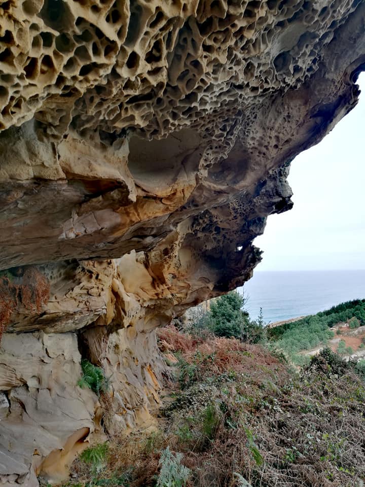 Putrekabi, la morada de los buitres. Cuevas colgadas que en la distancia pueden hasta pasar desapercibidas. Jaizkibel es un inmenso queso de Gruyere por dentro, imaginamos canales y ríos de agua subterráneo que irán trabajando futuras cuevas. Qué no esconderá todavía.