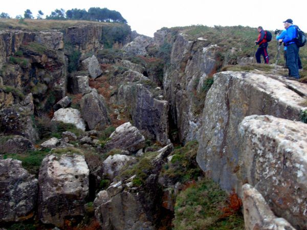 Por la misma costa desde la gran laja de Azabaratza con pequeña playa hasta la gran grieta de Akerregi. Más geoformas, refugios, cabañas…