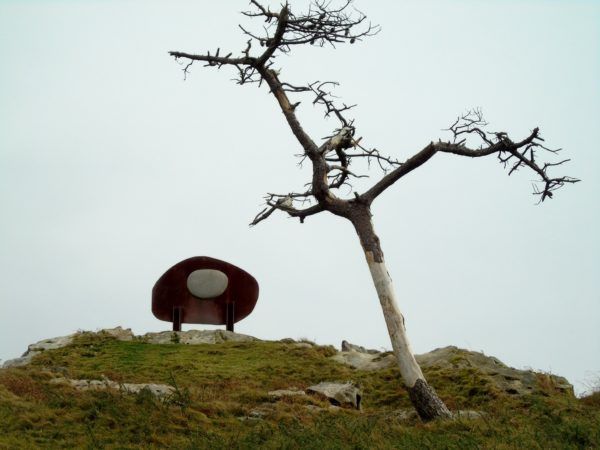 Atzein, Unión de los pueblos, es una obra de Remigio Mendiburu en la muga entre San Juan y Hondarribia, donde dicen los atardeceres son memorables. Con el sol pintando ya de oro las laderas de Jaizkibel observamos con atención la maravillosa línea de costa que se abría más allá de Zumaia. Un caballo se sumó a la idílica escena campestre, pareciendo huir de las caricias de Carlos Pérez Olozaga, iniciando aquí un descenso en picado junto a la valla que delimita los dos pueblos.