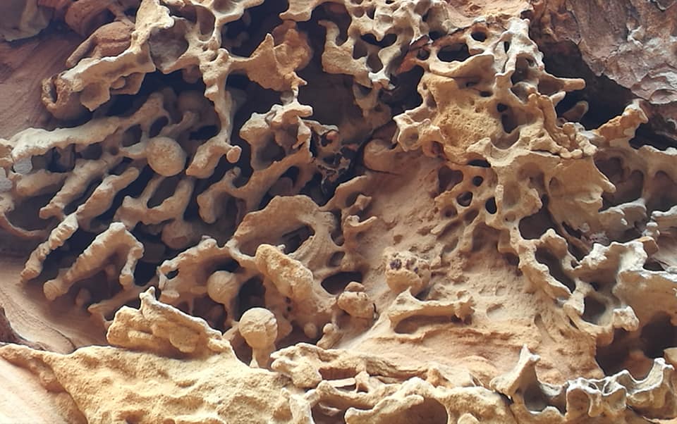 Pero el laberinto escarpado continuaba hasta encontrar varias geoformas que una vez más hacían volar no a los buitres sino a la imaginación. Así aparecieron de repente, la » chimenea » , » el pez » , el » hombre de piedra « que parecían salido de un cuento de fantasía. Formaciones que según de donde se vean no parecen nada pero que dando un pequeño rodeo, aparecen huecos tallados por la naturaleza como si un orfebre viviera aquí desde miles , millones de años.