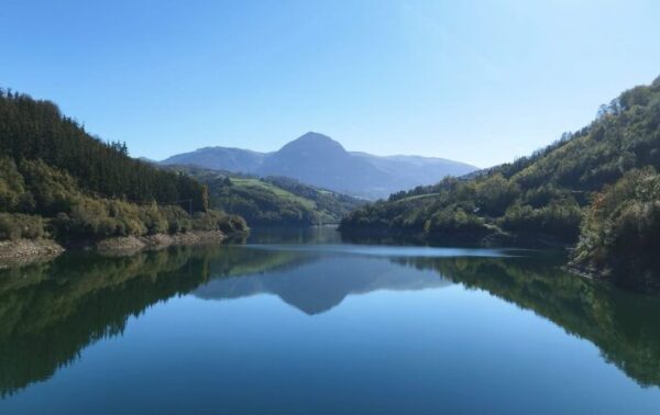 Desde ahí sale una preciosa senda que en poco más de 45 minutos me deja en el embalse. Rodearlo no me llevará más de 40 minutos. Si quiero caminar más sigo hasta las campas de Enerio y hasta el dolmen de Jentilarri, y es que por algo estamos en tierras mitológicas.