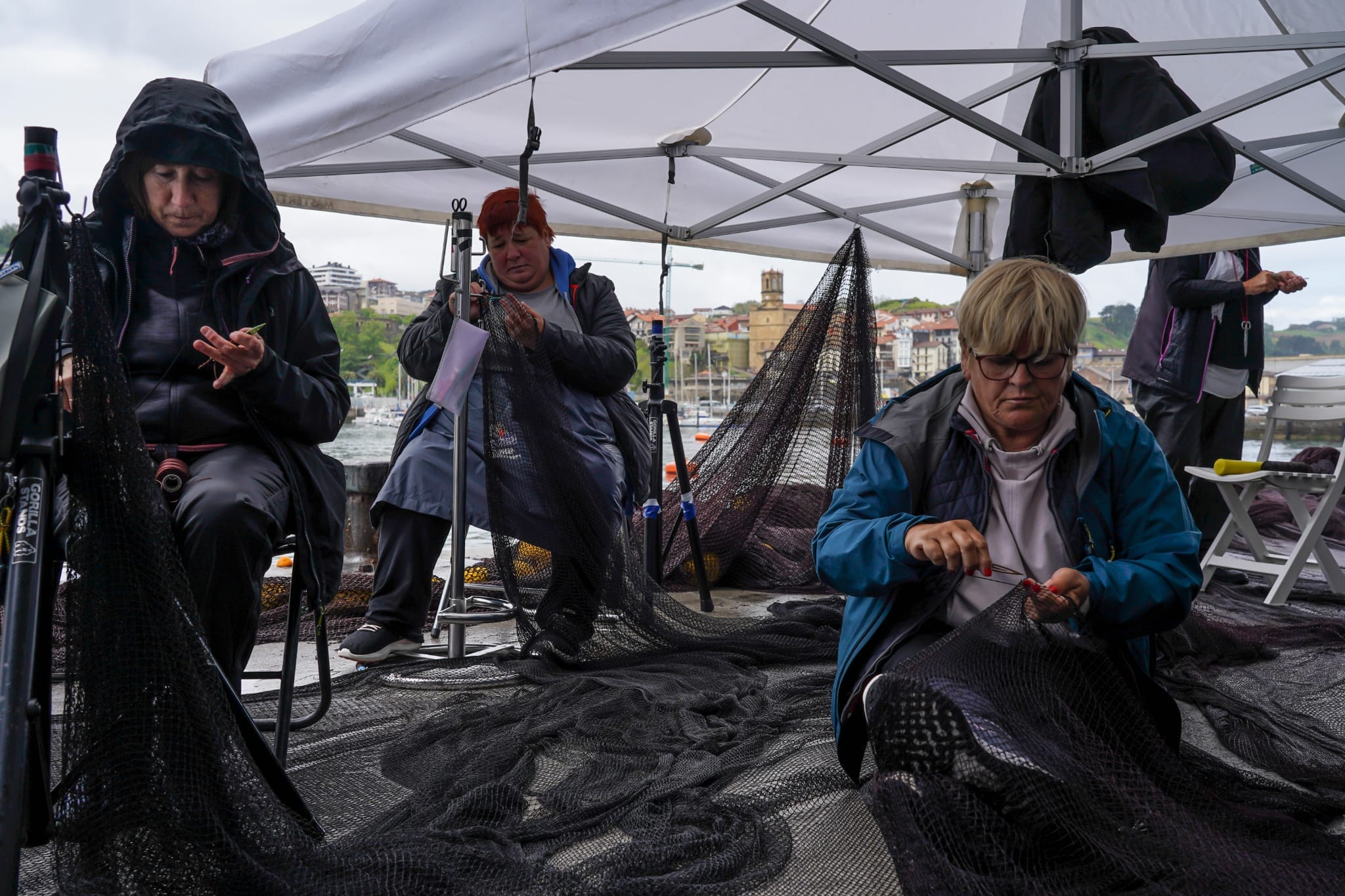 Un homenaje a las rederas de Getaria, Sare konpontzaileak. Getaria cuenta con la primera escuela de rederas de Euskadi, un oficio centenario y artesanal.