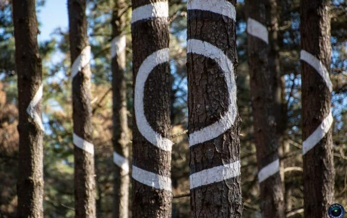 BOSQUE DE OMA. En su nueva ubicación, sigue brillando el Bosque de Oma, obra del pintor y escultor Agustín Ibarrola. Fotos de Donosti City propiedad de la Diputación Foral de Bizkaia. "Obra creada por [...]