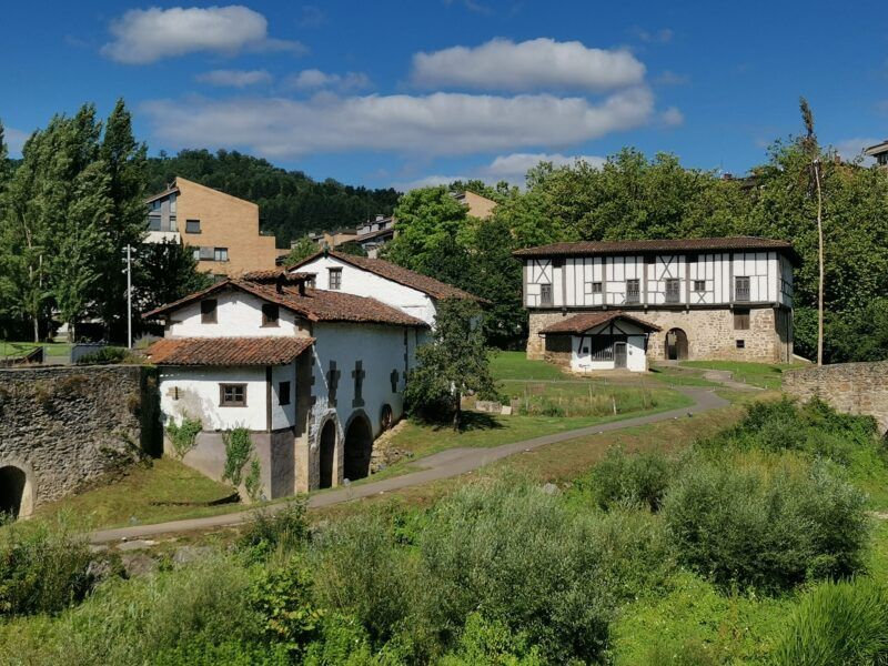 Me entretengo un poco en la bonita plaza del Ayuntamiento y sigo recto hasta el conjunto monumental Igartza, único en Euskadi con Palacio, lagar, ermita, serrería, ferrería y albergue, además de tener la única presa musealizada de Europa, una presa que apareció en el río tras las riadas de 1983.