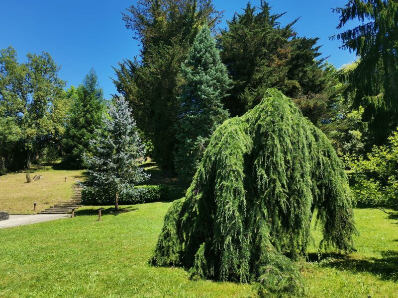 Un poco más adelante, a la altura de la villa Oskargi, dejo la pista y entro por la izquierda en un pequeño y oscuro sendero a base de escaleras de piedra. Enseguida entro de nuevo en la pista que me lleva derecho al parque botánico Txomenane en pleno Idiazabal.