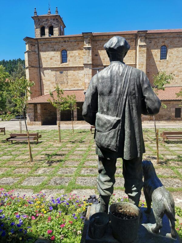 Veo junto a la Iglesia del Señor San Miguel de Idiazabal el bonito monumento al pastor y más adelante paso también por el centro de interpretación del Queso Idiazabal.