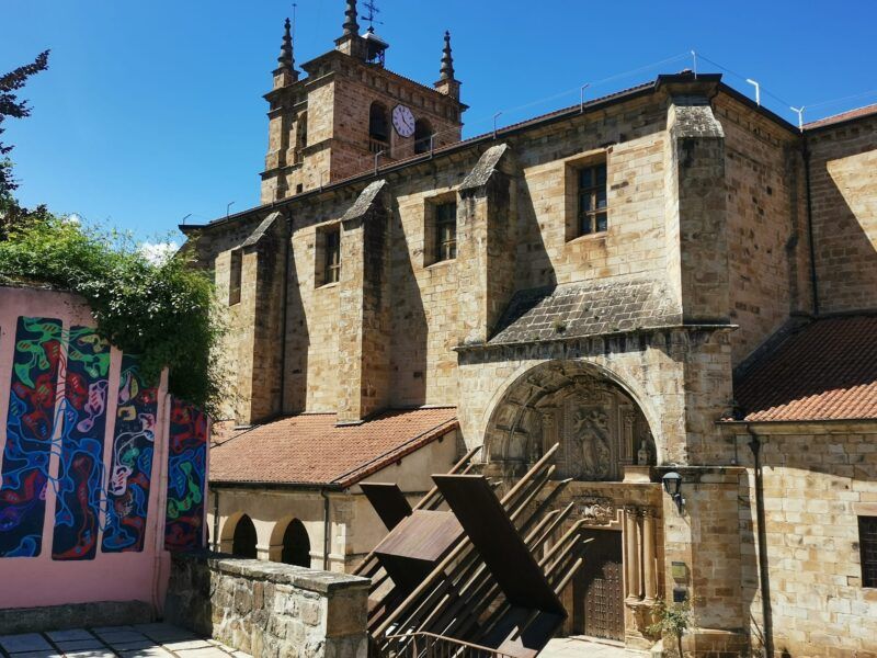 Sigo hasta la Iglesia de la Santa María de la Asunción para bajar a la estación y seguir derecho hasta Beasain. Los primeros kilómetros son entre casas y pabellones industriales como el de la CAF. La vinculación de Beasain, y de todo el Goierri, a industrias como la ferroviaria, les lleva a llamarse “vagoneros”.