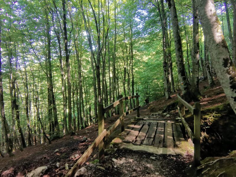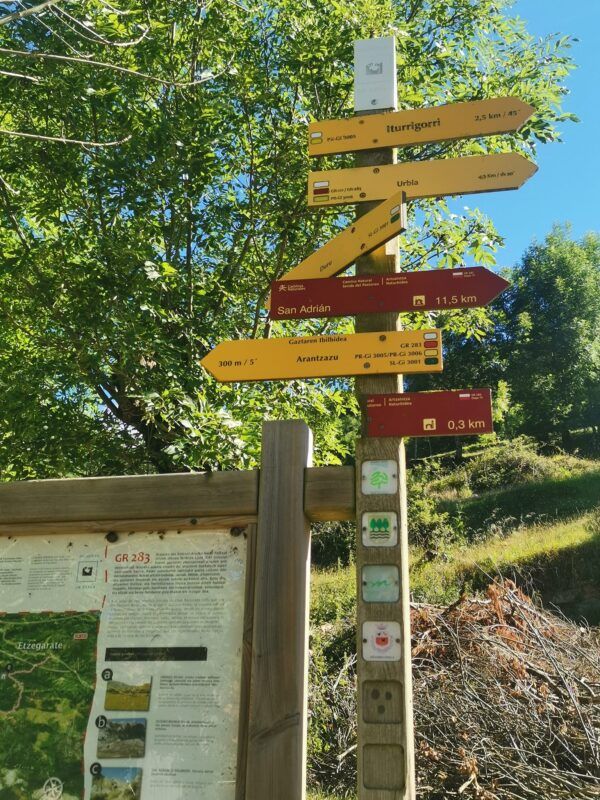 Tras el copioso desayuno inicio la etapa, larga y dura, pero muy reconfortante por la grandiosidad del paisaje que voy a conocer entre bosques, primero y al final, y los espacios abiertos de las campas de Urbia. Y además, el túnel de San Adrián y el alto de Otzaurte. Todo bajo la mirada de la imponente sierra de Aizkorri.