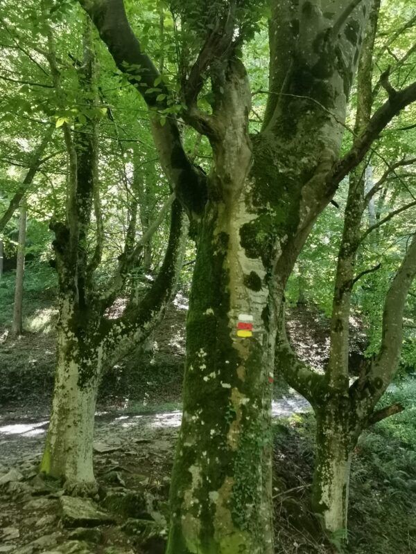 Un frondoso y hermosísimo bosque sube desde el Santuario, a la altura del hotel Sindika, hasta las campas de Urbia. Este tramo tiene un desnivel de 450 metros que se salvan en cuatro kilómetros, pero la belleza del bosque, el canto de los pájaros y el juego de luces y sombras con el sol, me entretiene al máximo.