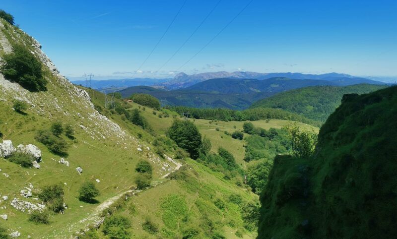 Ya en terreno despejado las vistas son maravillosas. El Santuario queda muy abajo y se ven perfectamente las paredes de caliza de Aitzulo, la cumbre de Orkatzategi y más al fondo, Udalatx y Anboto.