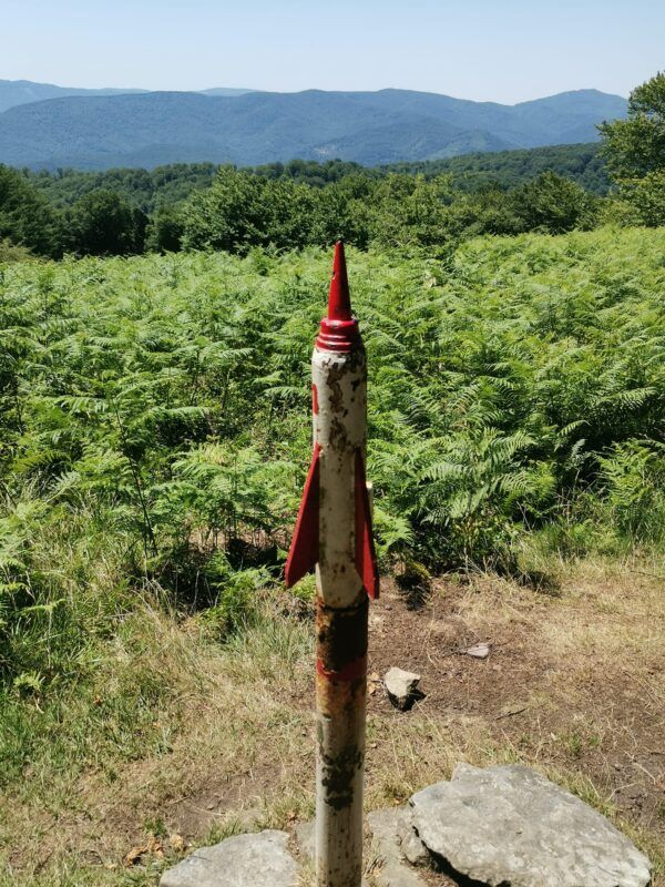 Entre algún sube y baja, llego a Intsusburu (943 metros) donde se abre el panorama a toda la sierra de Aizkorri-Aratz, así como las cumbres de Udalatx y Anboto. En esta cima hay un inconfundible buzón en forma de cohete y un dolmen visible.