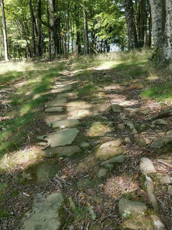 Unos metros más adelante veo parte de la calzada de Bernoa, que llevaba hasta los puertos de Pasaia y de la costa guipuzcoana. Calzada vinculada a la reconstrucción del ballenero San Juan en el Albaola de Pasaia, al ser el camino que utilizaban los arrieros. Desde Etxarri Aranaz hay una ruta recién creada que sube la calzada hasta Intsusburu.