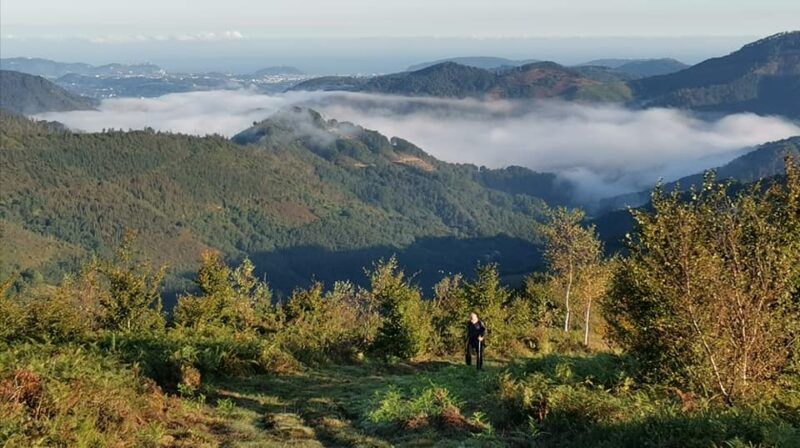 Para no ser menos, deciros que Arano es el único pueblo navarro con vistas al mar y en concreto a la bahía de La Concha. En cuanto ganamos un poco de altura se podía ver perfectamente. En la foto de portada vemos a la derecha entre sombras el pueblo de Arano y al fondo, Donosti.