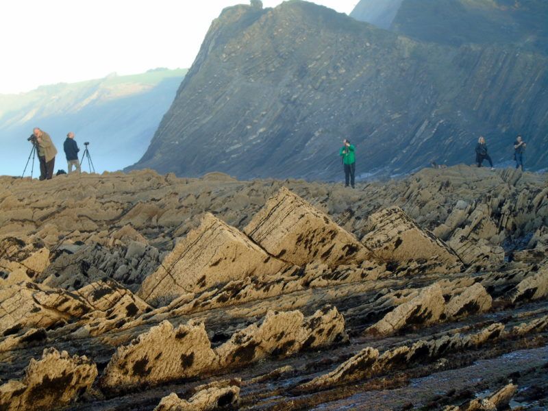 Los flysch de este Geoparque se extienden en trece kilómetros de costa desde Zumaia a Mutriku pasando por Deba y aunque parezca mentira en su playa de Itzurun en Zumaia puede leerse toda la historia geológica de la tierra. Todo un documental en un libro tallado hoja a hoja por cada Era geológica. Primero bajo el mar y luego muy por encima de él. Un mar que en cada temporal vuelve a cincelar el acantilado.