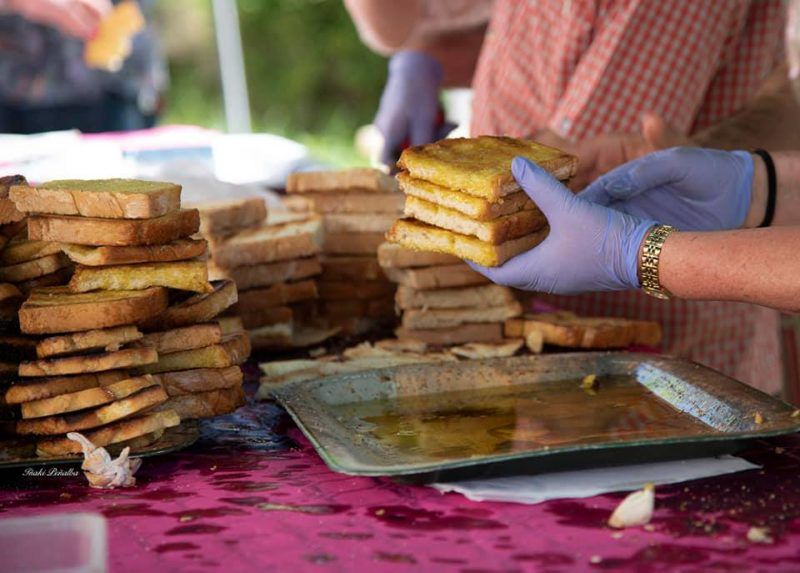La fiesta continuaba en la calle con las cuatro bodegas en la plaza del Ayuntamiento donde había hasta un photo call. Cada bodega seguía ofreciendo vino, más de 400 botellas descorcharon entre todas hasta que el Alcalde, que seguirá en el cargo otros cuatro años, tuvo a bien decir que era ya el momento de comer. Cómo no, el escenario estaba en Casa Tomás, un restaurante que sorprende por su comida pero también por su amplitud y las fenomenales vistas. El menú y el fenomenal ambiente ponían un gran broche a la jornada.