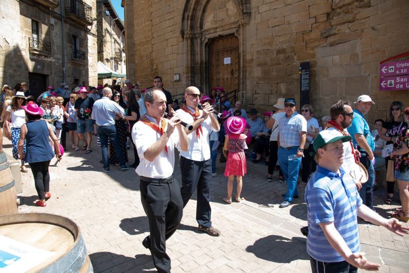 Ya en el pueblo, fiesta en cada esquina y momento para saborear… más rosado… y las estrechas calles empedradas de este pueblo, joya navarra, dominado en su parte más alta por la Iglesia de San Martín, de cripta románica, de la ermita de San Miguel de estilo protogótico y la Iglesia de Nuestra Señora del Pópolo, en estilo gótico. Balcones con escudos, blasones y más de un rincón muy bello. Nos contaron, algunos guipuzcoanos de los muchos que vimos, que a la plaza de Zubiaur, con un precioso mirador, le llaman la Plaza de Gipuzkoa ya que vive un vecino de Irún, otro de Hondarribia, otro de Oiartzun…