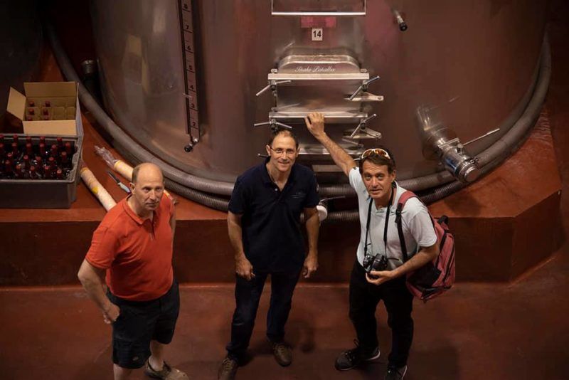 Javier Ayerra y hermanos nos hicieron de anfitriones en la bonita bodega que tienen un poco antes del pueblo subiendo desde Olite. Tras ensañarnos el duro trabajo que requiere un buen vino participamos del ambiente antes de terminar de subir al pueblo. El olor a las brasas inundaba también la bodega así que tuvimos un buen inicio de jornada, viendo las viñas, barricas de diferentes maderas pero sobre todo participando de una agradable charla en la que pusimos fecha para que en la vendimia preparemos una buena sesión de fotos… y de vino.