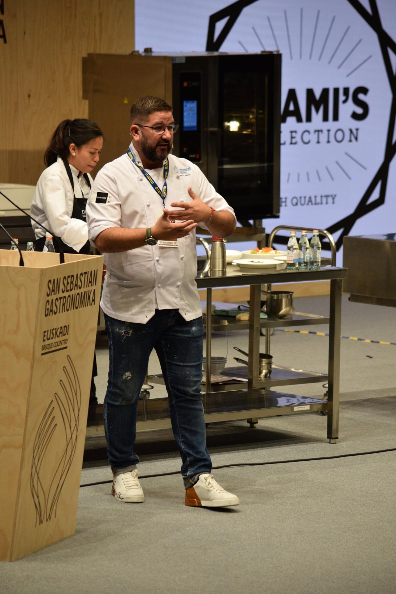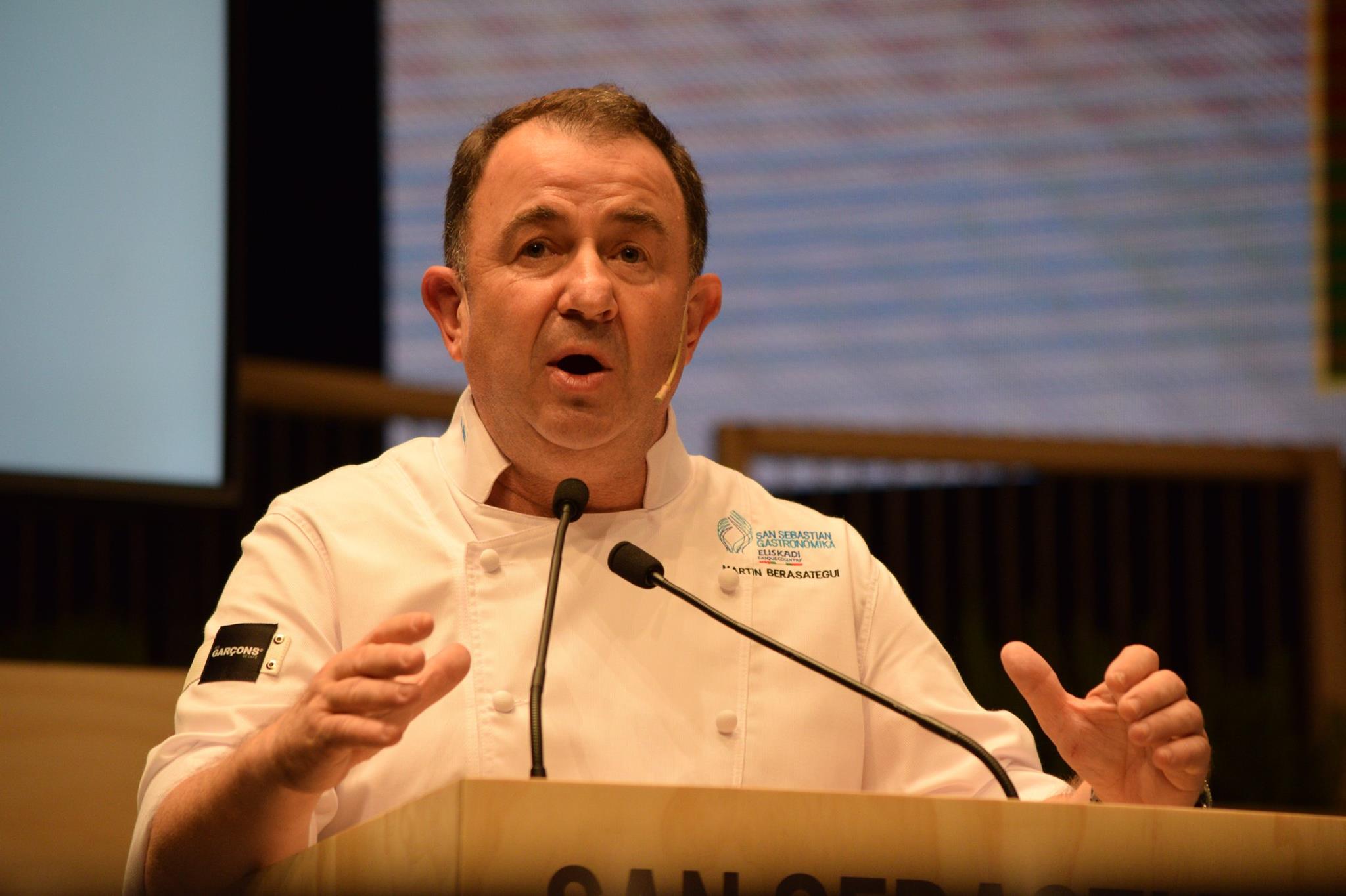 y una frase para guardar a fuego (“más allá del show, es esencial la parte gustativa del menú”) a Martín Berasategui (Martín Berasategui***, Lasarte), que ha emocionado recordando sus orígenes y sacrificios (“para ser un buen cocinero hay que trabajar seis días a la semana y, el séptimo, estudiar»), y celebrando los 25 años del restaurante. Como reconocimiento, ha presentado a uno de sus alumnos “con más futuro”: Víctor Suárez, ahora en el restaurante Haydée de La Orotava. El chef de Lasarte ha finalizado su ponencia recordando la importancia de las mujeres en la cocina y comunicando tres restaurantes “que inauguraré en breve”. Serán en Lisboa, Bilbao y Madrid. Ha cerrado la mañana Paul Pairet (Ultraviolet, Shanghai, octavo mejor restaurante de Asia), quien ha felicitado a Gastronomika con una vela comestible.