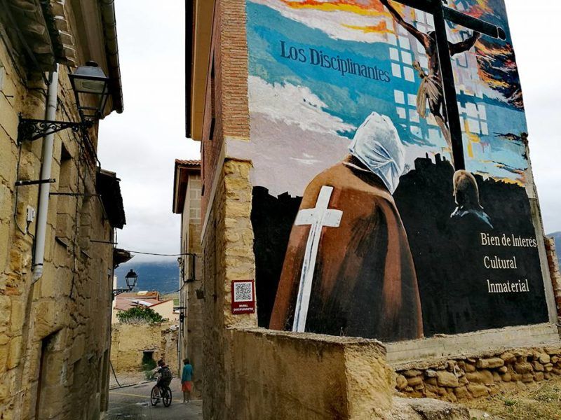 La subida al recinto amurallado se convierte en el paseo principal, guiado por el Ayuntamiento si se desea, viendo casas blasonadas y los espectaculares murales de los disciplinantes o de la cercana joya románica de Santa María de la Piscina, del siglo XII.