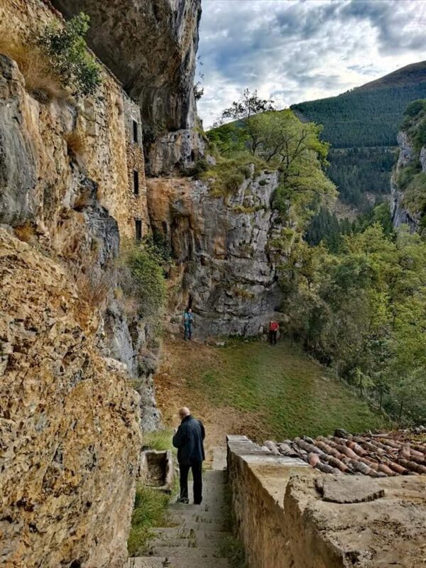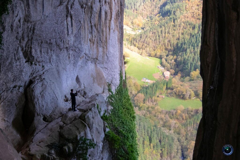 Sin embargo, la curiosidad nos atrapa pues veremos una escalera de piedra que sube hasta un gran hueco en la roca, otro más en el macizo de Aizkorri horadado en su interior lentamente por la erosión del agua.