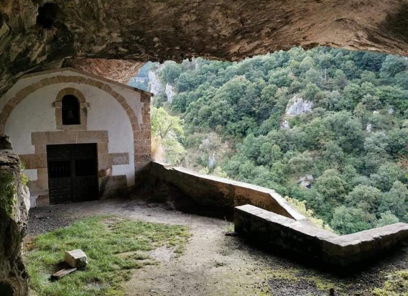 Subimos las escaleras, no sin recelo, hasta llegar a la cueva de Sandaili con su pequeña ermita. La cueva es más sobrecogedora si cabe y a buen seguro veremos volar algún murciélago.