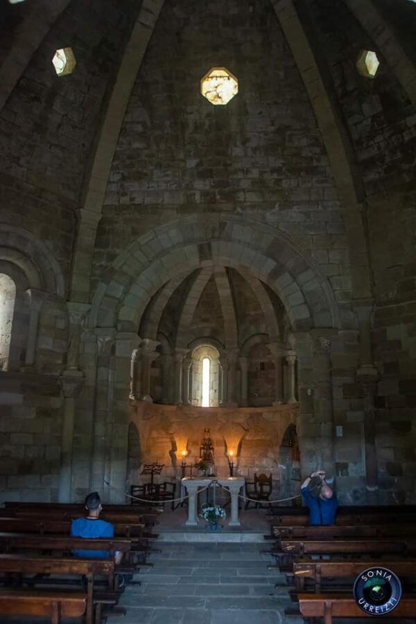 Es diferente a todo lo visto en el arte románico con hechuras semejantes al Templo del Santo Sepulcro en Jerusalén. La nave es un espacio abovedado octogonal dando aspecto de «faro», guía del peregrino pues de noche su torre tenía una linterna. Y no menos brillantes son sus vistosas arquerías.