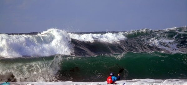 En cambio, con viento Oeste o a favor, la ola llega tan rápido que se va disgregando, el mar se convierte en un salpicón aborregado de pinturas blancas y tan pronto salta una en una esquina como otra en el centro, como otra de izquierda a derecha o al revés. Eso sí, olvidemos la cámara que quedará como una ensalada por lo salada. Y olvidemos tentar a la suerte de aguantar más que el amigo ya que la caladura será tal que además de impregnar de sal hasta el tuétano de nuestros huesos, las carcajadas de quienes ven de lejos nos lo hará replantear para la próxima vez.