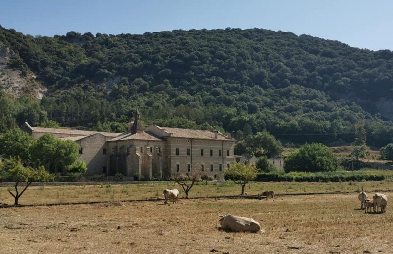 En Abarzuza, merece la pena desviarse al Monasterio de Iranzu atravesando un desfiladero. En su tiempo, se buscaban sitios apartados y con agua abundante.