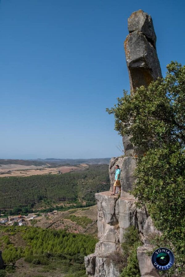 No hará falta ir muy lejos pues saliendo de San Gregorio veremos una pista que en cinco minutos me lleva a un curioso monolito natural, casi colgado al vacío. Una columna gigantesca de 20 metros de altura que parece mentira se mantenga en pie.